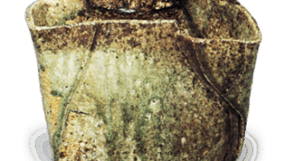 織部 肩衝 茶入 日本織部 肩衝 茶入 X Facebook はてブ LINE Pinterest コピー 2014.07.132024.01.26 織部 肩衝 茶入 Oribe Tea caddy uf katats/ki type. brown glaze高さ10.0cm 胴径6.0cmcm 織部黒肩衝茶入と似た作振りの茶入で、 胴にひっかいたような文様がつけられています。釉膚は鉄銹色に焼き上がっていますが、 高台に光存の手印と称されています「Q」の印がつけられた珍しい作例であります。