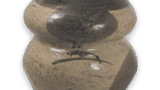 織部 分銅形 香合 日本織部 分銅形 香合 2014.07.242024.01.26 織部 分銅形 香合 Oribe Incense caddy In shape of balance weight高さ4.6cm 口径3.0×4.0cm 底径4.6×5.4cm 分銅形の香合で、 蓋表の中央に手をつけて、 手の部分のみ緑釉をかけています。 胴には二方にあっさりと太い筋文様を描いていますが、簡略な表現のうちに織部焼らしい創意が働いています。 底にはざんぐりとした白い土膚があらわれ、 中央部を押し上げたような作振りがおもしろい。