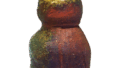 織部 草花文 汁注 日本織部 草花文 汁注 X Facebook はてブ LINE Pinterest コピー 2014.08.282024.01.26 織部 草花文 汁注 Oribe Dressing pourer with flowering grass design高さ11.1cm 口径6.7cm 左右14.8cm 底径6.7cm 俗に汁注と呼ばれている小振りの器であります。他にもいくつか見ているが、このの器はことに作振りが軽妙であります。一方に草花と梅鉢文、裏面には檜垣風の文様を描き、蓋には渦文様をつけています。大振りの高台が素直に削り出されています。