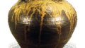 織部 切落 手鉢 日本織部 切落 手鉢 X Facebook はてブ LINE Pinterest コピー 2014.09.152024.01.26 織部 切落 手鉢 Oribe Square bowl of indented sides with handle across mouth高さ16.9cm 口径18.9×22.8cm 四脚畠山記念館 切落しの手鉢で、見込に丸文と梅花文、 縁に菱畳文などを、 外側には横縞と波文様を描いています。 成形が珍しくきっかりとしており、底の土膚はややかたい。 見込に目跡が四つ残っています。 箱の蓋表に「つるつき」、蓋裏に 「文化辰年夏求之 白酔庵 (花押)」 の書付があります。