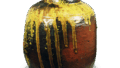 織部 葦鷺文 手鉢 日本織部 葦鷺文 手鉢 X Facebook はてブ LINE Pinterest コピー 2014.09.182024.01.26 織部 葦鷺文 手鉢 Oribe Bowl with handle across mouth with reed and heron design高さI5.9cm 口径23.7cm 底径l6.5cm これらは他にほとんど類例を見ない異形の手鉢であります。大振りの手鉢で口部を輪花にし、鐸状の縁と外側に彫文様をつけ、手に菊の印花文を散らしています。見込には草鷺の文様をあっさりと描いています。