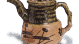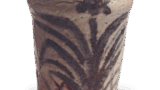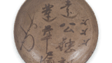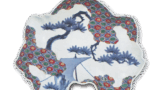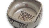 織部 台鉢 日本織部 台鉢 2014.11.052024.01.27 織部 台鉢 Oribe stem bowl高さ6.3cm 口径14.8cm 底径6.9cm 口部を輪花にした台鉢で、見込には根引きの小松らしい文様と葉の文様をあらわしています。縁に点じた緑釉がこの場合は一景をなしています。