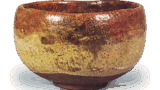 焼成は酸化ぎみで、黄瀬戸にちかい釉調ですが、どこかくすんで、濁った感じです。釉色は俗に枇杷色とよぶように、淡黄かっ色を呈していますが、斑と呼んでいる斑状に明るく赤味をおびたところがあります。万造りはぼってりとしていますが、縁造りは比較的に薄く、わずかに端反りぎみになり、碗形の胴を大きい高台がささえています。高台は低いが竹の節になり、底裏の削りは片薄で、まん中のうずを見ると左回りの轆轤(ろくろ)で削ってあります。見込みには茶だまりもあり、伯庵七契を十全具備した茶碗です。