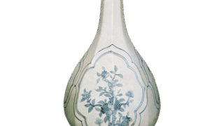 枇杷色の釉肌には、例のごとく多くの参みが浮んでいます。あるところでは淡い紫に、あるところでは深い羊黄色を呈して、えもいえぬ風雅な景観です。岩かげや木の間を縫って、明暗を織りなしながら流れる曲水と見たのか、曲水の宴という銘がつけられています。また見込みの一面には、ひしやくで釉をかけたときにかけ残しになった釉切れ、つまり新月状の火間が出て、一段と興趣をもりあげてくれます。