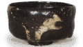 形はやや開きぎみの椀形で、外面は黒地黄斑の玳玻釉である。