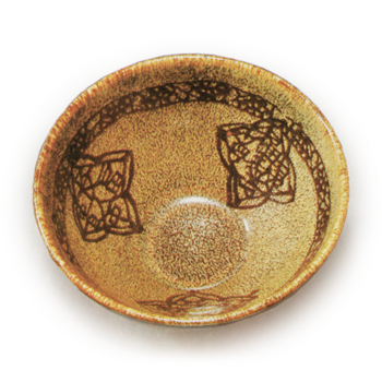 このような複雑な文様は、上釉が流れ込んで乱れがちであるが、この茶碗は非常に精密で出色の作である。