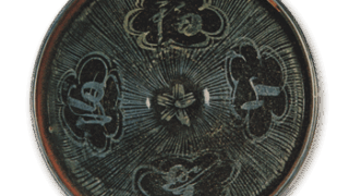 内面の文様は、三つの花菱輪違文の中に「富貴長命」つ金玉満堂」「福寿康寧」の四字句が浮かび上がっている。