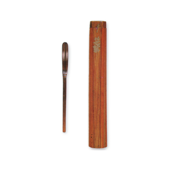 【付属物】内箱-黒塗、銀錠前付 外箱-桐白木、蓋裏書付万愧和尚筆 被覆-一べ白地小牡丹古金欄・紺地寿字宝大緞子挽家-紅葉金蒔絵 天目台-存星・砂張覆輪、青貝 同箱-桐白木、書付万傀和尚筆