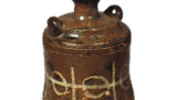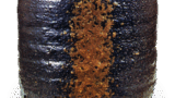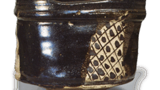 素地は卵殻色にちかいです。小砂をかんだざんぐりとした土で、黒飴色の釉薬が厚く内外にかかっていますが、高台と高台わき半分は露胎である。