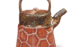 萩焼は、文禄・慶長の役(1592-8)に、毛利輝元に付き随って渡来した朝鮮の陶工李敬によって創始されたやきもので、今日遺存する作品の大部分は、茶陶です。窯址発掘のされないまま、この伝統ある茶陶の発展は未解明の部分が多かったですが、最近、古窯址の発掘も行われて、徐々にその姿が明らかになりつつあります。初期の萩茶碗は、いわゆる高麗茶碗の写しで、井戸タイプのものと考えられますが、この紅萩茶碗は筒形で、和風化されています。土はおそらく大道上が主で、ざっくりしています。萩釉の紅い発色が美しく、萩茶碗の柔らかく、暖かい特色を十分にみせてくれます。《寸法》高さ8.7 口径12.4