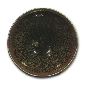 曜変の現象は、焼成中を通じて含まれている還元性のガスまたは釉薬中の揮発分が、熔融した釉を通じて逃げる際冷放されますと、その部分に溜まった釉が気泡の大きさに丸く凝縮し、同時に結晶状となります。