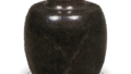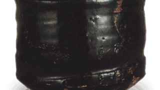 漆黒の光沢のある釉がかかり、その幕釉の垂れが裾周りに蛇蝸釉となって一面に現れます。