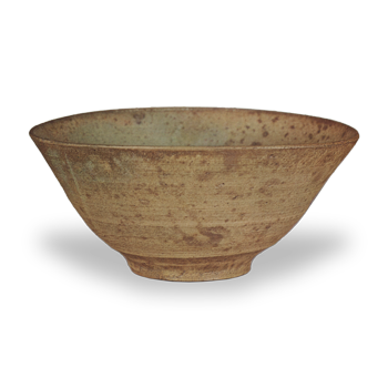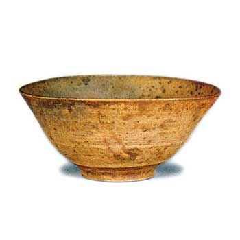 堺の魚屋から遠州に伝わったといわれ、見込みの紫じみから武蔵野の紫草に因んで、二代小堀宗慶が江戸斗々屋と命銘しました。 いわゆる本手斗々屋で、淡茶色の素地に釉がかりうすく、枇杷色の上がりに青みの火替りが景となっています。肌には挽き目の細筋めぐり、ロ縁に切回しがあります。見込みに点在する紫じみも特色を加え、高台内は巴降っきりと、ちりめん皺が美しいです。