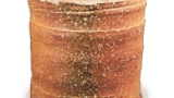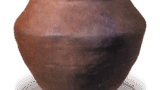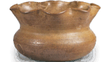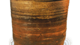 その姿は「大クロ」と似ていますが、作行きはいささか異なります。「次郎坊」銘の茶碗は、他に赤の茶碗が一碗ありますが、長次郎焼の茶碗には同銘のものがいくつか現存しており、「大クロ」も他に一碗あったことが昔の記録にうかがわれます。やや厚手で口部は僅かに内に抱え込み、腰高の立ち上りで腰にまるみがあり、高台もやや高くくっきりと作られています。高台畳付は片薄で平らですが、中は斜めに深く削り込まれています。総体にかかった釉はややかせて、褐色にむらむらと窯変しています。目跡ははっきりしません。黒塗の蓋表には「次郎坊 元伯(花押)」と宗且が書き付け、蓋裏には仙叟が「利休所持次郎坊黒茶碗 千宗旦ヨリ来ル 箱表書き付同筆 宗室(花押)」と書き付けています。いずれも朱漆書です。