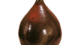 沓形の茶碗で腰に強く段をつけています。慶長年間前半から美濃で流行しだした黒織部の沓形茶碗に近い作振りです。全体の作りは厚手で、口部はまるく作られています。高台はまるく円形に削り出され、高台内中央に楽字の印が捺され、高台を中心に三角形の土見せを残して全面に厚く釉がかかっています。高台内中央に捺されている印は常慶印と呼ばれている印で、前図までの茶碗に捺されている印とは異なっています。あるいはこの印は、常慶が秀忠から拝領した印かもしれません。箱蓋裏には如心斎が「二代目くろ茶碗 ホトトギス(花押)」と書き付けています。