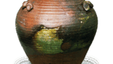灰器 日本灰器 2017.04.242023.10.16 灰器 高さ8.6cm 口径19.4cm 丸底この灰器はノンコウの作で、内箱蓋裏に「のんかう 灰ほう路く左(花押)」と如心斎が書き付けています。全面に薄く仙がかけられ、腰の下にノンコウ常用の印が捺されています。ノンコウ作の灰器としては優れたものの一つです。ノンコウ時代から、このように仙薬をかけた赤楽の灰器が焼かれるようになる。腰にめぐらされた櫛目も装飾的にあらわされるようになり、長次郎時代の素朴な作行きとはかなり異なった作為がうかがわれるものです。