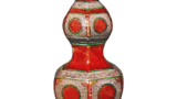 釉色は鮮やかな柿色で、肩にみられる青白い残月状の白い釉溜りがあり、反対面にも蛇蝎様の窯変がみられます。