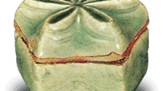 これは切紙を貼って上の釉をはじき文様を得たものであるようで、一つずつ文字は変わっていて、「富貴長命」「金玉満堂」「福寿康寧」の四字句になっています。