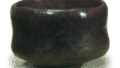 口が広く、捻り返しが浅く、甑が低く、肩が衝き、黒ずんだ渋紙色のうちに光沢の美しい黄釉で大小さまざまの模様かおり、やや品位に乏しいうらみはありますが、どっしりした茶入です。