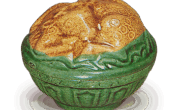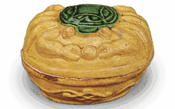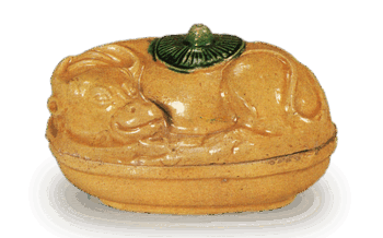 交趾 笠牛(黄色)寸法高サ5.7cm口径4.0―7.3cm胴径5.5―8.7cm底径2.7―6.0cm重サ130g 牧童の笠らしいものを背中にして、牛は悠々と伏している。いかにものどかな中国の風景をし...