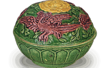 交趾 大獅子寸法高サ5cm口径6.5cm重サ154g この香合は「大獅子」 とよむ。総黄を上位として、番付の前頭一段におかれている。獅子がうずくまった姿で堂々たる基形を構成し、身は蓮弁の彫り出しをもっ...