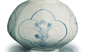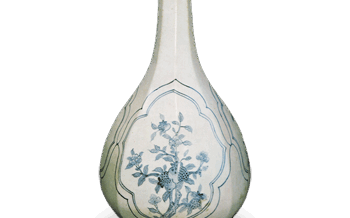 白磁 青花 染付 絵桃柘榴文 面取 瓶