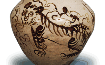 粉青沙器 白泥地 鉄絵 絵刷毛目 蓮池 烏魚文 壺