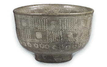 古唐津の流れ 三島唐津茶碗 銘「蓬莱」 高さ8.6cm 口径11.8×3.1cm 高台径6.1cm 三島風の白黒象嵌文のある作品を三島唐津と呼び、内田小峠、大草野、百聞窯などから陶片が出土しているが、この茶碗は大草野、あるいは小峠の作ではないかと推測されている […] 2013.11.19 古唐津の流れ唐津日本日本の陶滋茶碗