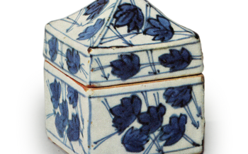 染付 辻堂寸法高サ6.6cm左右4.7cm重サ115g 染付辻堂香合は、香合番付西の筆頭大関にかかげられ、染付のうち、もっとも時代がふるいといい伝えられる。数も少なく、筆者の知るところでは五点だけであ...