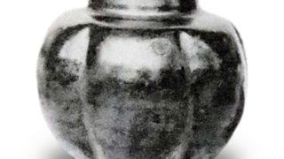 大正名器鑑 柑子 柑子柑子唐物 侯爵 前田利爲氏藏名稱柑子の形こたる唐物茶入なり。寸法高 壹寸五分五厘胴徑 壹寸七分五厘又壹寸八分口徑 七分五厘底徑 六分甑高 壹分五厘肩輻 參分重量 拾匁壹分附屬物一蓋 一枚 窠一御物袋 紫絹 緒つがり紫一挽家 時代無地獨樂... 2026.02.25 大正名器鑑