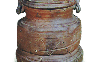 備前 不悪 ふあく 不悪 ふあく備前耳付水指。共蓋。ねっとりとした田土で、下がり耳、首部を締め腰を張り、無造作な箆文様をみせ、さらに締めてから、強くしっかりした円座部分に至ります。その姿の生けころしの呼吸が巧妙。無釉なが... 2012.04.22 備前日本水指茶道美術鑑賞辞典
