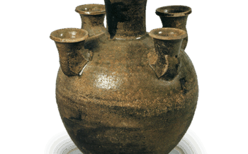 古代灰釉 灰釉 多口瓶 灰釉 多口瓶Ash glaze pottery: jar with multiple spouts. Excavated from Kurozasa No.36 Ceramic Kiln, Miyos... 2023.11.06 古代灰釉日本日本の陶滋重要文化財