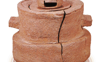光悦 園城寺 おんじょうじ 園城寺 おんじょうじ空中耳付水指。共蓋。姿は、織部好みの伊賀風をねらいながら、一種の創作を出したもの。前面の裾に箆の一線を入れ、手造りの単調さにアクセントを付け、耳は腰とのつり合いをとるために突出して... 2011.07.22 光悦日本水指茶道美術鑑賞辞典