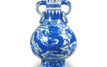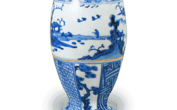 京焼 万暦染付写龍文立 万暦染付写龍文立Hozen: shaku-tate (ladle stand for use in tea ceremony) in the style of Wan-li blue and whit... 2024.04.28 京焼日本日本の陶滋