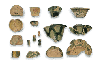古代三彩 二彩 多嘴瓶破片 二彩 多嘴瓶破片Two-color glazed ware : fragments of vase with multiple spouts. Excavated on the ruins of Mi... 2023.11.05 古代三彩日本日本の陶滋
