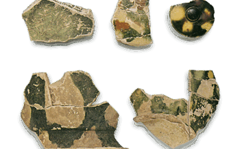 古代三彩 彩釉陶器 陶片 彩釉陶器 陶片Color glazed ware: shards. Excavated on the ruins of Heijō Imperial Palace, Nara-shi, Nara. 8... 2023.11.05 古代三彩日本日本の陶滋