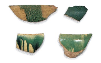 古代三彩 彩釉陶器 陶片 彩釉陶器 陶片Color glazed ware: shards. 8th century. Length of upper left 8.6cm. Tokyo National Museum.8世紀... 2023.11.05 古代三彩日本日本の陶滋