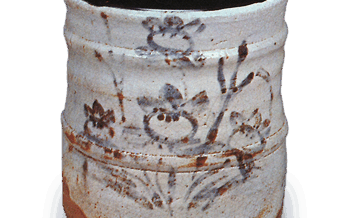 志野 志野籬絵水指 しのまがきえみずさし 志野籬絵水指 しのまがきえみずさし志野は、純粋な長石釉を乳濁状に厚く施し、また特有の貫入と窠穴をみその釉下に鬼板と称する鉄彩料で、きわめて簡朴な粗画を描きます。釉際や絵の部分に滲み出る美しい火色も大き... 2012.03.11 志野日本水指焼き物のお話