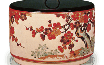 仁清 仁清色絵梅花文水指 にんせいいろえばいかもんみずさし 仁清色絵梅花文水指 にんせいいろえばいかもんみずさし太鼓胴形平水指。重文。仁清作として比較的重厚な姿。梅の古木に赤と金かんにゅう銀彩の梅花がまさに満開、緑色鮮やかな笹を配し、上下を一線の紅色で区切って... 2012.04.11 仁清日本日本の陶滋水指茶道美術鑑賞辞典重要文化財