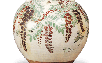 仁清 仁清 色絵 藤花 茶壺 仁清 色絵 藤花 茶壺仁清 色絵 藤花 茶壺国宝 昭和26年6月9日指定Teajarwithwisteriadesign,enamelledware.ByNinsei.Edoperiod,Japan.... 2023.06.11 仁清国宝壺日本日本の陶滋