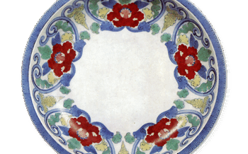 日本 色鍋島 色絵 椿文 七寸皿 色鍋島 色絵 椿文 七寸皿Dish with camellia design. enamelled ware高さ5.7cm 口径20.3cm 高台径10.8cm岡山美術館 七寸皿の左半部に花をつけた椿... 2015.09.24 日本日本の陶滋鍋島