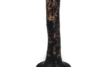 中世瀬戸美濃 瀬戸 鉄釉印花文燭台 瀬戸 鉄釉印花文燭台Seto ware: candlestick with stamped ornament, iron glaze. Excavated from Shimizuta Ceramic... 2023.11.23 中世瀬戸美濃日本日本の陶滋
