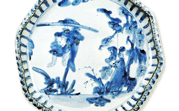 古伊万里 染付 人物文 八角 皿 染付 人物文 八角 皿高さ5.6cm 口径26.4cm 高台径11.4cm 縁の立ち上がったやや深い皿で、厚手に成形されている。見込には松と梅を右にあらわし、左には二人の人物が飛翔する図があらわされて... 2016.05.21 古伊万里日本日本の陶滋