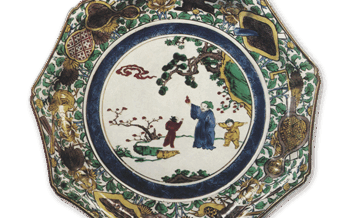 古九谷 色絵 崖上 唐人物文 九角 大皿 色絵 崖上 唐人物文 九角 大皿Nonagonal dish with design of Chinese figures on the rocks, enamelledwareMouth diame... 2023.05.20 古九谷日本日本の陶滋