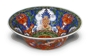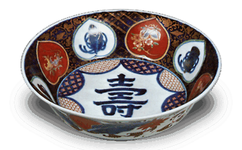 古伊万里 色絵 寿字 鉢 色絵 寿字 鉢高さ7.5cm 口径20.9cm 底径8.9cm 口部を端反りにした俗に朝顔形といわれている円形の鉢である。これも伊万里型物特有の器形といえる。見込中央には赤地金彩で「寿」の字、側面の三... 2016.07.27 古伊万里日本日本の陶滋