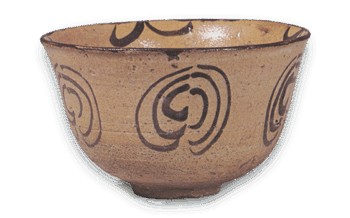 唐津 絵唐津 屈輪文 茶碗 高さ9.5cm 口径15.5cm 高台径5.3cm 端反りにゆったりと深く立ち上がった茶碗で、口径に比して、高台は小振りに低く削り出されている。胴の五方に、中央で描き分けた三重丸文様を気楽に描き、内部口辺の四方に草状の文 […] 2013.10.10 唐津日本日本の陶滋茶碗