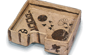 日本 織部 四方 平鉢 織部 四方 平鉢Oribe Sauare shallow bowl高さ7.5cm 口径19.6×19.7cm 四方平鉢のなかではもっとも鮮麗な作行きのもので、 手鉢にも見ある独特の花文様が瀟洒に描かれ... 2014.10.01 日本日本の陶滋織部