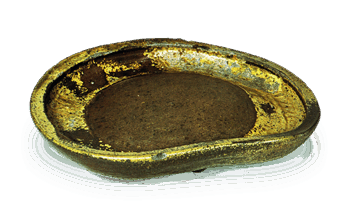 日本 織部 平鉢 織部 平鉢Oribe Shallow bowt高さ12.2cm 口径19.3×20.9cm 四脚 異形の平鉢で、いずれも類例は、極めて少ない。緑釉のかからぬ珍しいもので、見込には菊や丸文があっさりとあ... 2014.10.07 日本日本の陶滋織部
