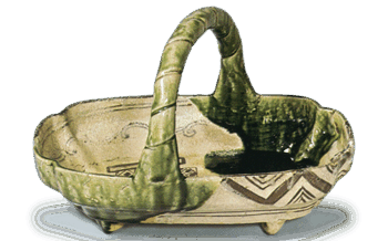 日本 織部 山水文 手鉢 織部 山水文 手鉢Oribe Bowl with handle across mouth with landscape design高さ14.6cm 口径22.9×27.8四脚 これらは他にほとんど類... 2014.09.19 日本日本の陶滋織部