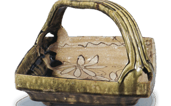 日本 織部 花唐草文 四方 手鉢 織部 花唐草文 四方 手鉢Oribe Square bowl with handle across mouth with flowering grass scroll design高さ15.9cm 口... 2014.09.16 日本日本の陶滋織部